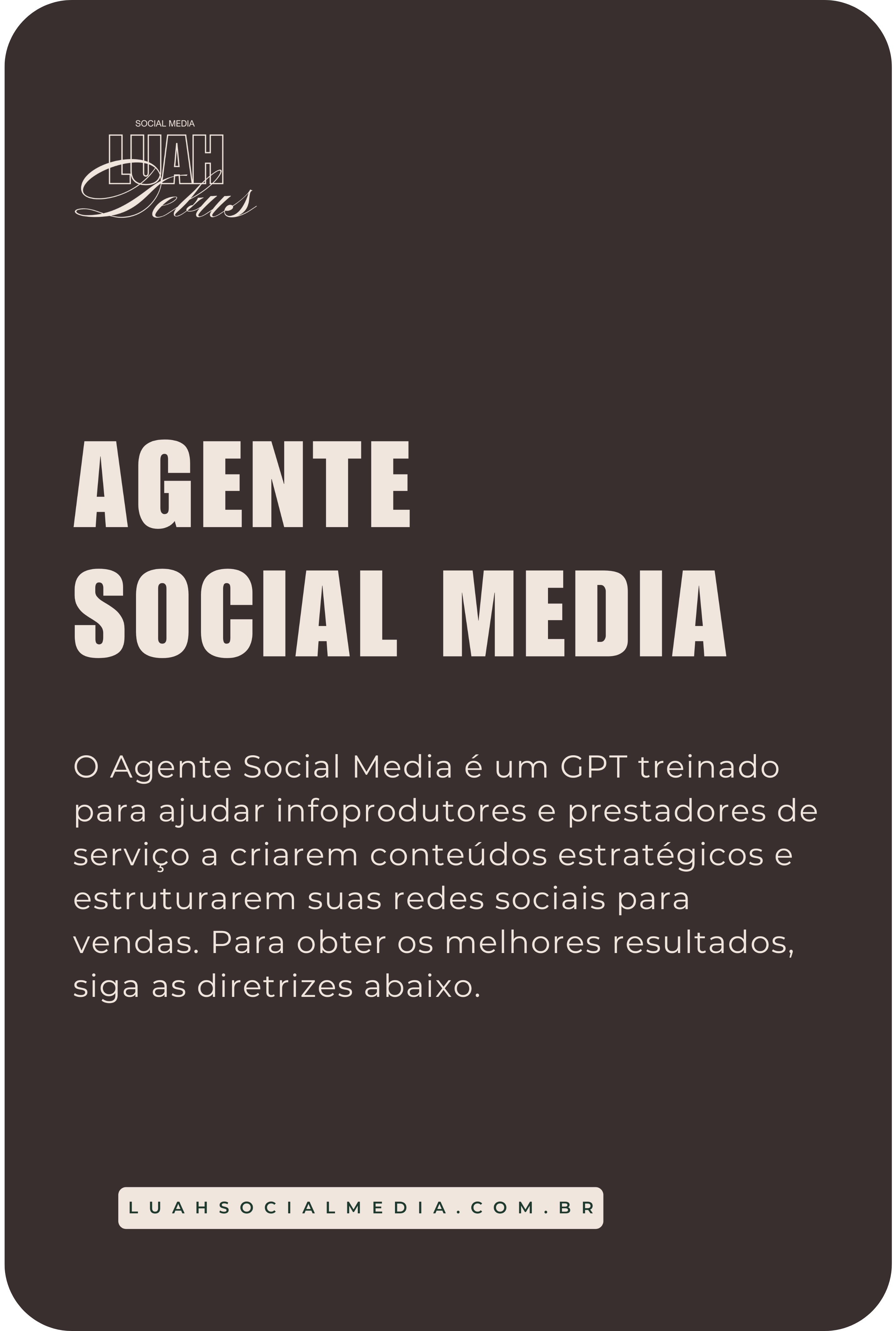 Você terá um guia de utilização detalhado para entender como usar o Agente Social Media. Além disso, poderá acompanhar minhas redes sociais para mais insights e novidades sobre marketing digital.
