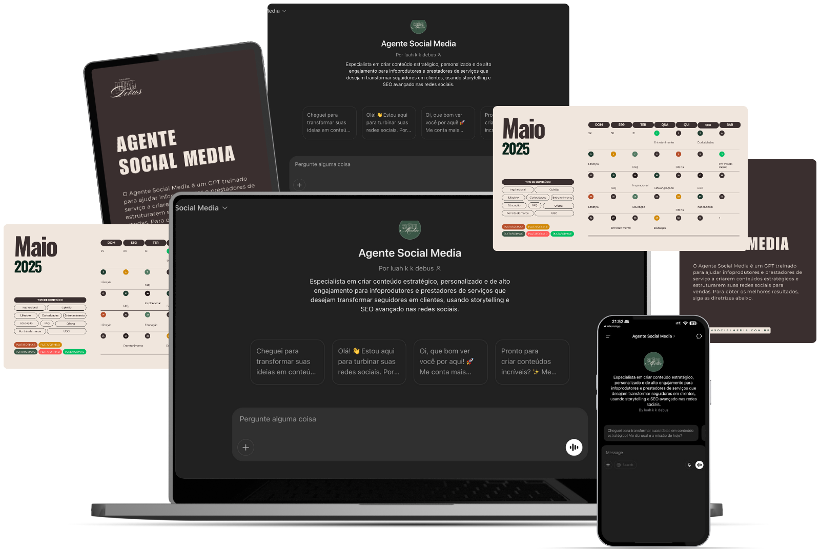 Um material exclusivo que ensina como extrair o máximo do seu Agente Social Media, otimizando prompts e utilizando inteligência artificial para acelerar seus resultados.