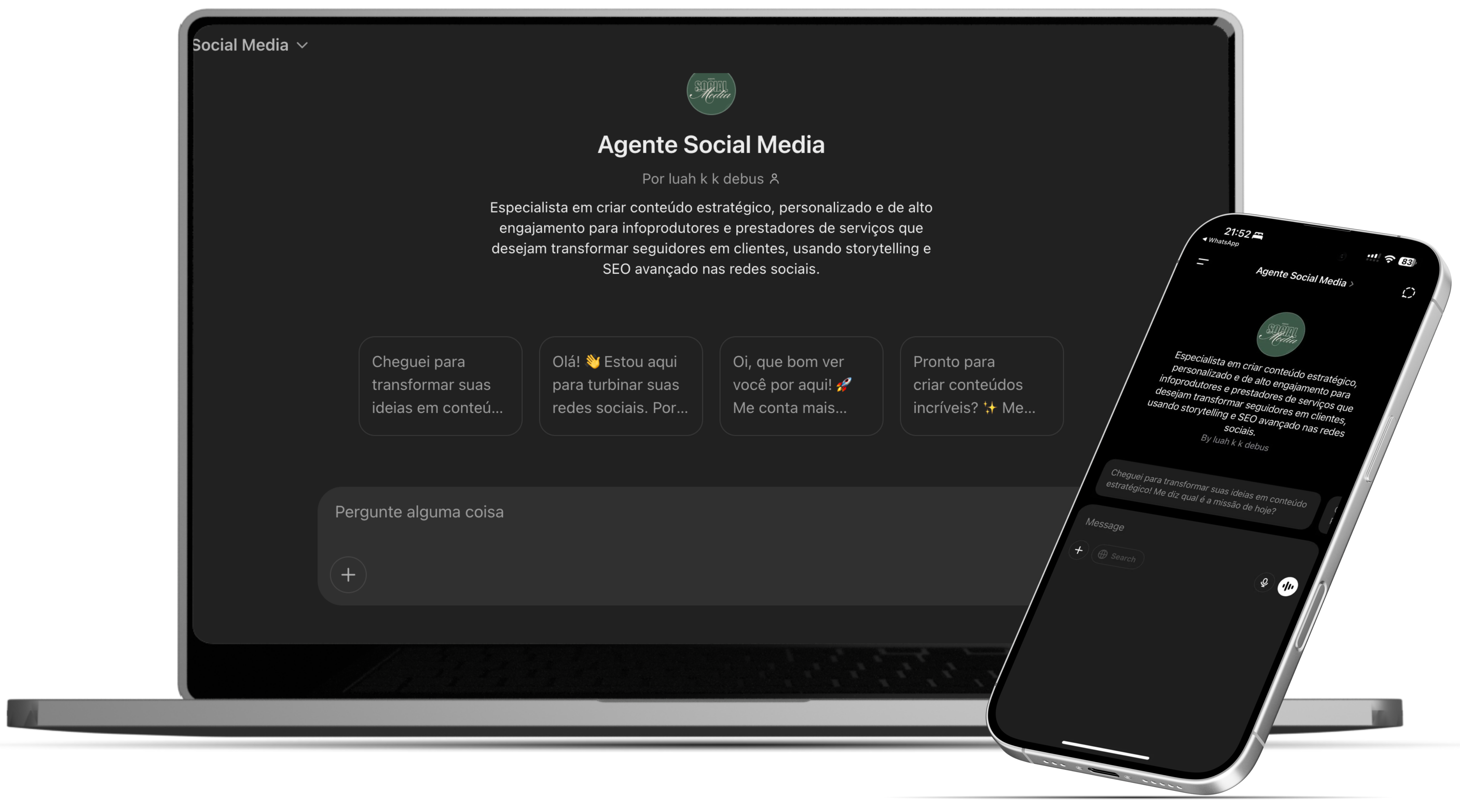 Utilizo meu próprio Agente GPT — o Agente Social Media — para acelerar o processo de criação e garantir conteúdo de qualidade, com consistência e estratégia.